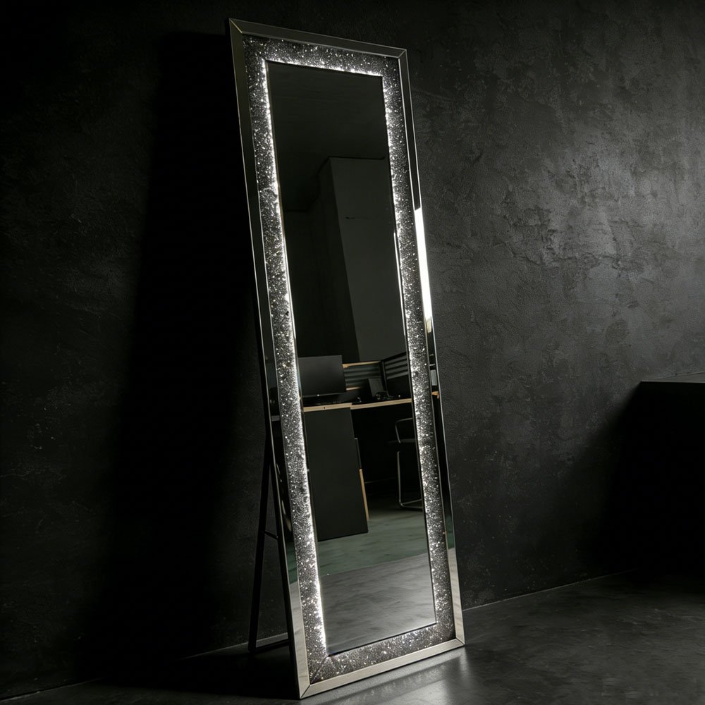 LED Rhinestone Full Length Mirror – 3-Color Dimmable LED Lighting