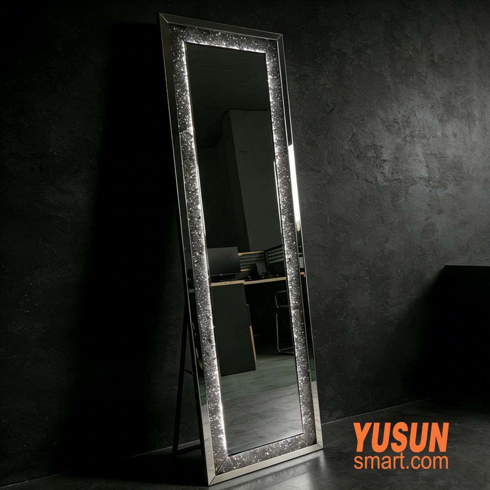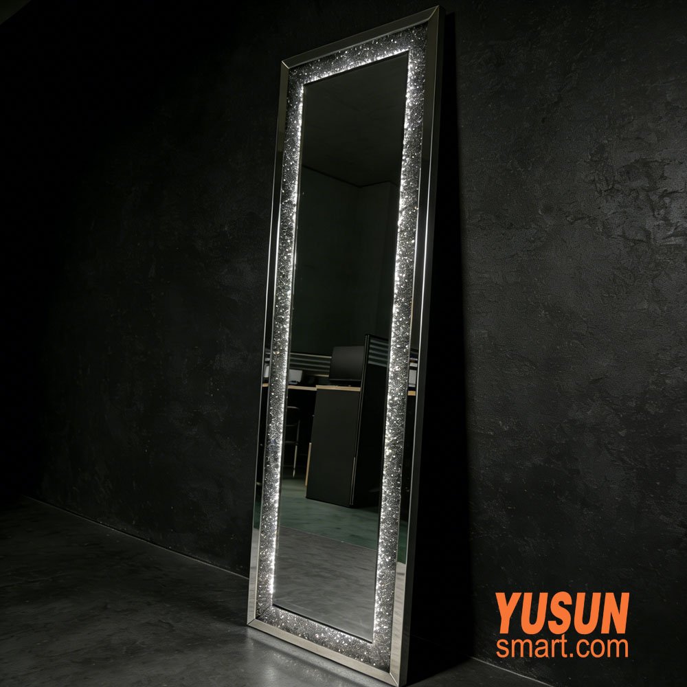 As a professional manufacturer of smart mirrors, YUSUN SMART focuses on quality and innovation. Our LED rhinestone full length mirror is designed to combine luxury and functionality, making it perfect for residential use, retail boutiques, salons, and hotels. We offer customizable sizes, OEM/ODM services, and bulk order discounts, making us the ideal partner for your project.